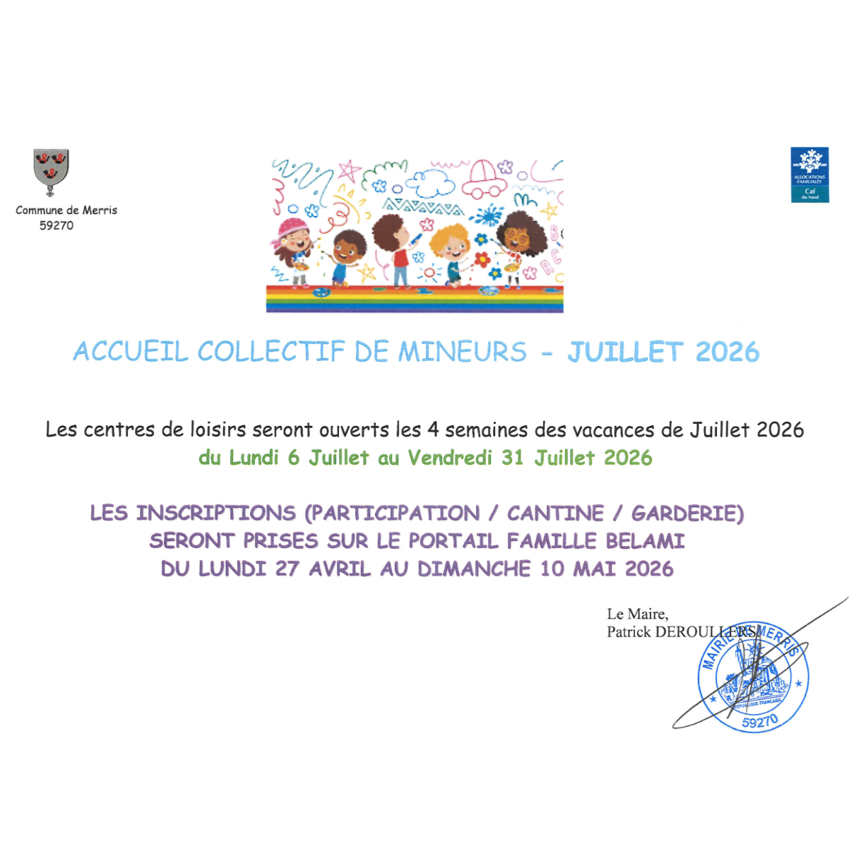 Ouverture inscription centres de loisirs vacances de Juillet 2026